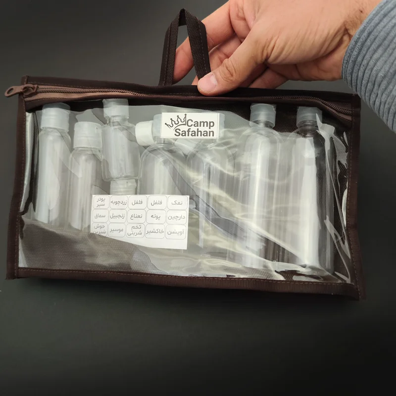 برای مسافرت و کمپینگ حمل ادویه ها در کیسه هاس نایلونی بسیار دست و پا گیر است، گذشته از آنکه امکان پاره شدن و ریختن ادویه ها در کیف یا سبد نیز وجود دارد. استفاده از ظروف ادویه شیشه ای یا سرامیکی نیاز گذشته از وزن زیاد، خطرناک است. در این میان استفاده از نظم دهنده سفری صفاهان کمک می تواند بهترین گزینه برای حمل ادویه و حتی مایعاتی مانند آبلیمو و روغن باشد. این محصول قابل استفاده برای کمپینگ، محیط کار، داخل خودرو و پیک نیک میباشد . این نظم دهنده از کیف و زیپ با کیفیت ساخته شده و ظروف نظم دهنده ها از جنس پلاستیک بهداشتی و نشکن می باشد و درب این ظروف هیچ گونه نشتی ندارد ، این امر باعث نظافت کوله پشتی یا سبد خوراکی شما در سفر میشود . حجم این ظروف بصورتی هستند که برای چندین وعده غذای مناسب بوده و از وزن اضافی در کوله پشتی و وسایل سفری شما جلوگیری میکند . شما می توانید ادویه های مختلف مانند دارچین ، نمک ، فلفل سیاه ، فلفل قرمز ، پود سیر ، زردچوبه و همچنین مایعاتی مانند آبلیمو، سرکه و یا روغن را با نظم دهنده سفری صفاهان کمپ همراه داشته باشید و برای پخت غذا در طول سفر خود استفده کنید.